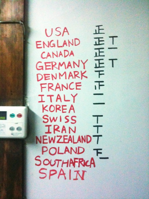 Por su casa habían pasado un montón de viajeros de diferentes nacionalidades, de hecho en su pared se podía ver este croquis. Tengo el honor de ser el primer español.