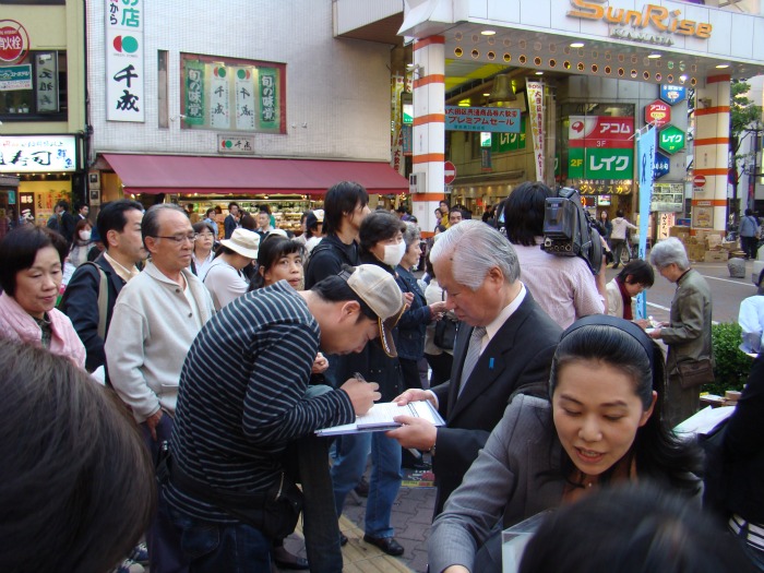 Los padres de Megumi en un acto para recoger firmas